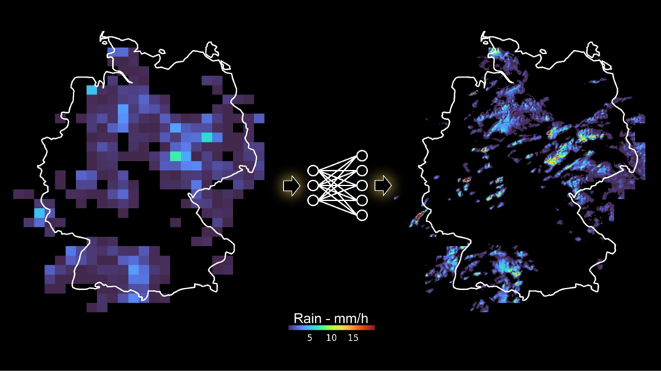 At KIT IMKIFU state of the art downscaling techniques are applied to refine the output of the climate models (scenic-DynAI). This includes dynamical downscaling using the weather research and forecasting model (WRF) and machine learning based approaches using the generative deep learning network spateGAN [1]. Thereby, deep learning methods have proven to be a valuable complement to traditional downscaling, as their calculation is significantly more resource-efficient.